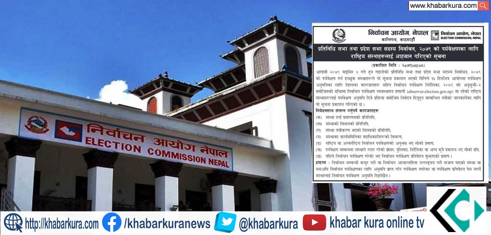 आगमी ४ मंसिरमा हुन गईरहेको निर्वाचनको पर्यवेक्षण गर्न इच्छुक संस्थाहरूले १५ दिनभित्र आयोगमा पर्यवेक्षण अनुमतिका लागि आवेदन माग गरेको हो ।