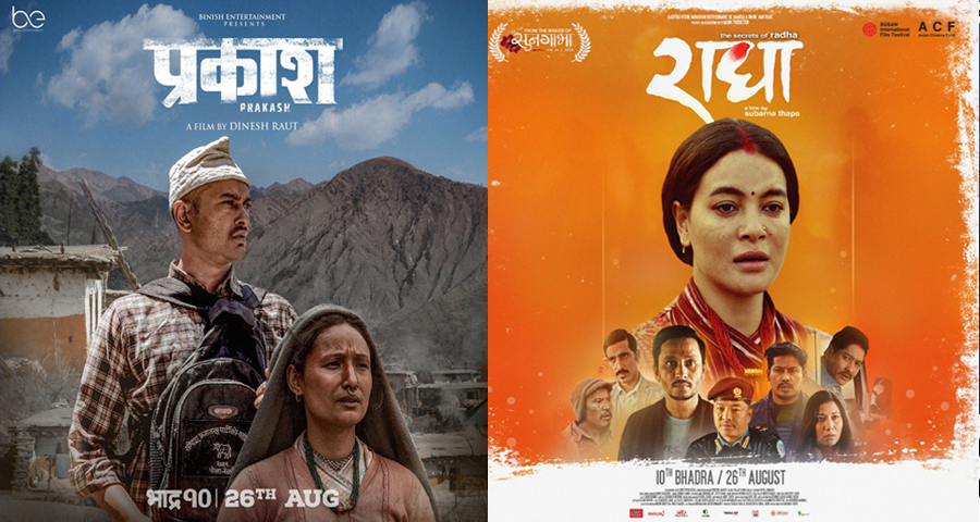 काठमाडौं । नेपाली कथानक चलचित्र ‘प्रकाश’ र ‘राधा’ आजबाट प्रदर्शनमा आएका छन् । दिनेश राउत निर्देशित ‘प्रकाश’ र सुवर्ण थापा निर्देशित ‘राधा’ एकैदिन रिलिज भएका हुन् ।