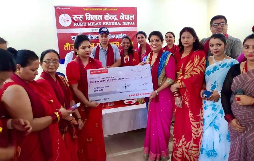 रुरु मिलन केन्द्र, गुल्मी रुरु क्षेत्रमा जन्मिएका र बुटवलमा आएर कर्म गरी बसेका वा यतै बसाँईसराई गरेका व्यक्तिहरुको सस्था हो । रुरु मिलन केन्द्र नेपालले शुक्रबार आयोजना गरेको तीजमिलन कार्यक्रम रमाइलोका लागि मात्र नभएर मृगौला पीडितलाई आर्थिक सहयोग गर्ने कार्यक्रम पनि बन्यो । तीज मिलनकै अवसरमा कार्यक्रममा रुरुमा जन्मिएकी चेली रेखा श्रेष्ठका श्रीमान मृगौला पीडित भरत प्रसाद श्रेष्ठको स्वास्थ्य उपचारका लागी केन्द्रले ६ लाख ८ हजार २३९ रुपैयाँ प्रदान गरेको छ । तीजका बेलामा गरेको यो सहयोग राहतमात्र नभएर संस्थाले रेखाको माईतीको दायीत्व पुरा गरेको छ ।
