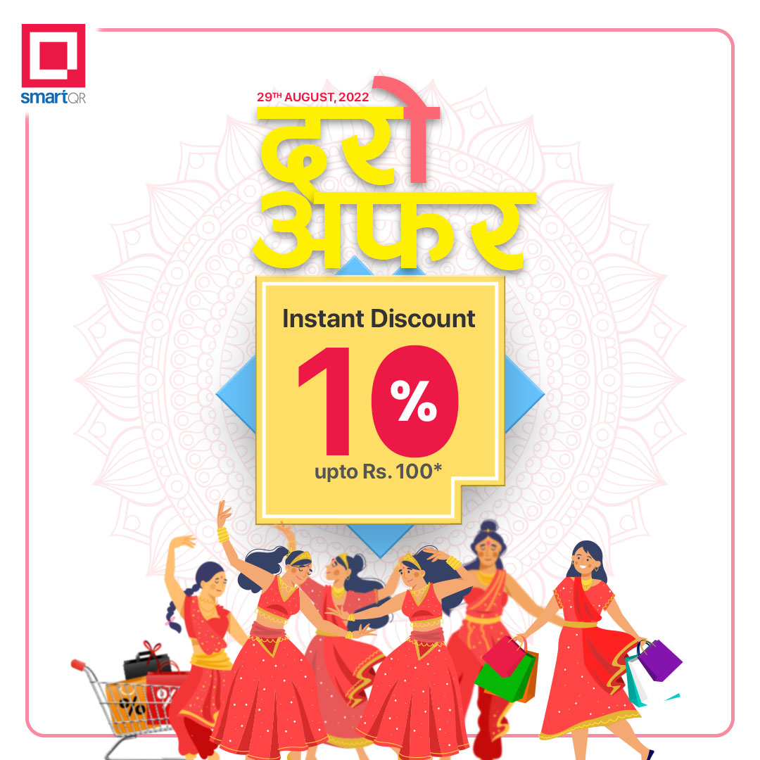 दरो अफरअन्तर्गत स्मार्ट क्युआर मार्फत जुनसुकै मर्चेन्टलार्ई भुक्तानी गर्दा १०% अर्थात १०० रुपैयाँसम्म तत्काल छुट प्राप्त गर्न सक्नेछन् । यस्तै, एससिटी– यूपीआइ डेबिट कार्ड प्रयोगकर्ताले क्यूआर मार्फत भुक्तानी गर्दा १०% अर्थात १०० रुपैयाँसम्म ) क्यासब्याक प्राप्त गर्न सक्नेछन् ।
