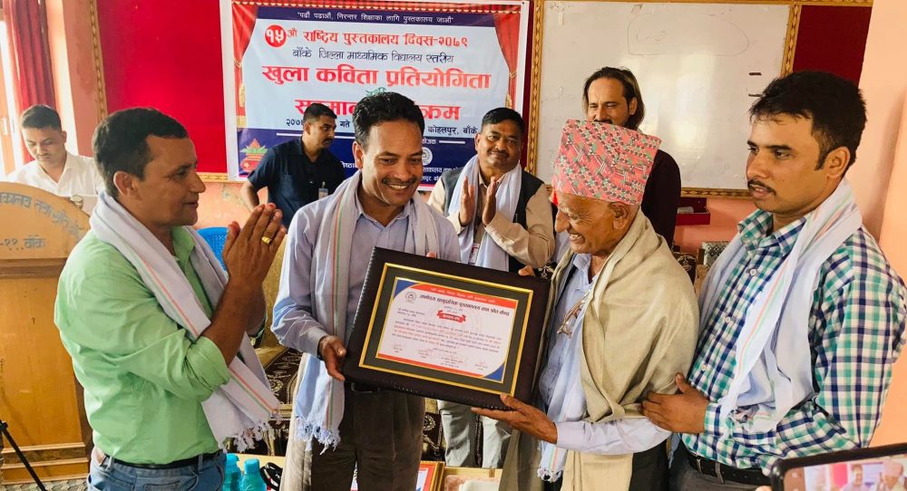 पुस्तकालयका अध्यक्ष चेतकान्त भट्टराईको अध्यक्षमा भएको कार्यक्रममा विभिन्न क्षेत्रका ३ जना विशिष्ट ब्यक्तिहरुलाई सम्मान गरीएको थियो भने पुस्तकालय दिवसकै अवसरमा आयोजित खुल्ला कबिता प्रतियोगिताका बिजयीहरुलाई समेत पुरस्कृत गरीएको छ ।