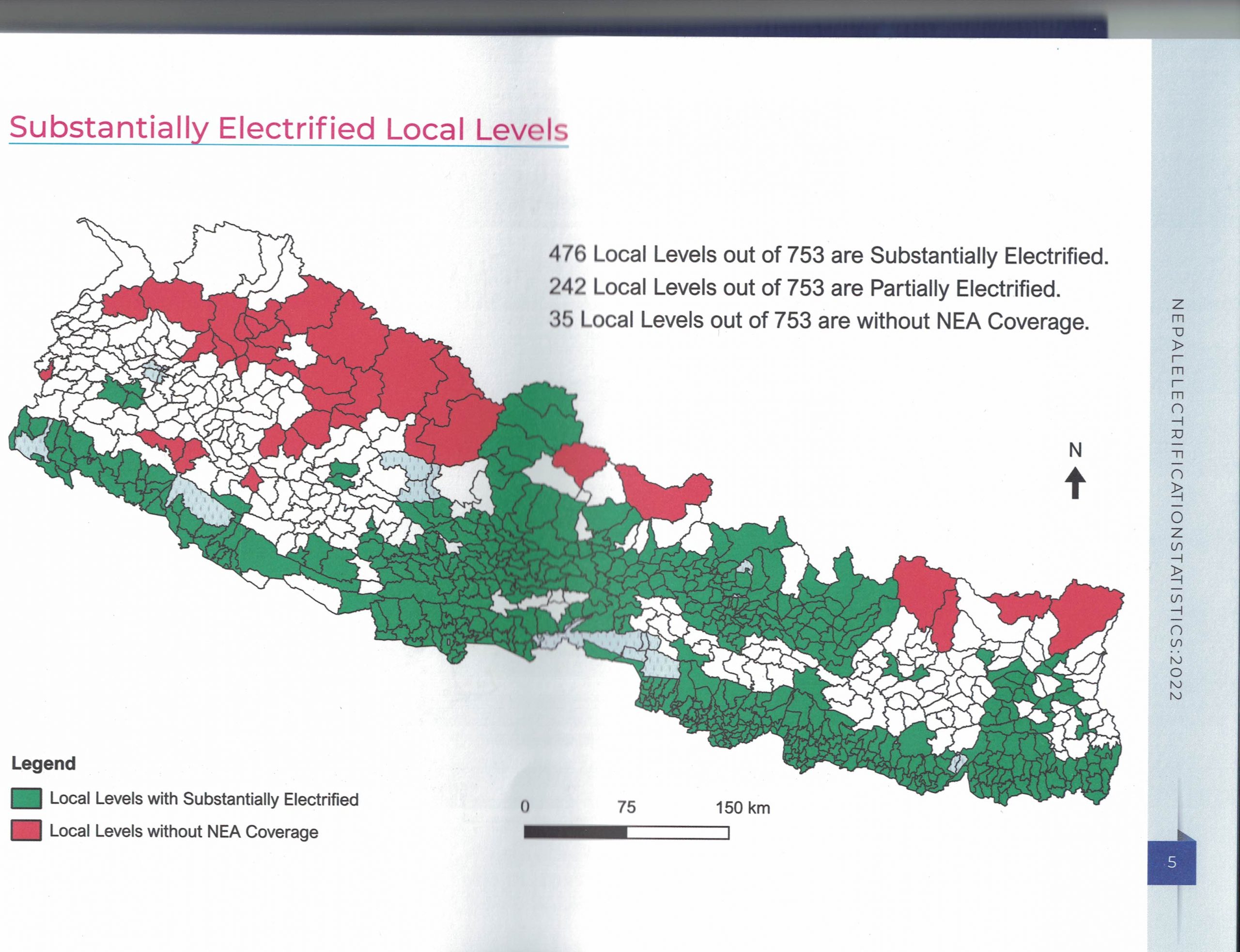 काठमाडौं । नेपालका ७५३ स्थानीय तहमध्ये ४७६ स्थानीय तह पूर्ण विद्युतीकरण भएका छन् । २४२ स्थानीय तहमा आंशिक रुपमा विद्युतीकरण भएको छ नेपाल विद्युत प्राधिकरणले जनाएको छ । ३५ स्थानीय तहमा भने अझै पनि प्राधिकरणले विद्युत पुर्याउन सकेको छैन ।