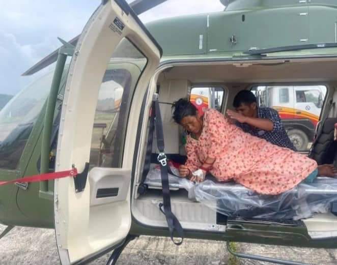 डोटी । डोटीमा एक सुत्केरी महिलाको हेलिकप्टरमार्फत उद्धार गरिएको छ । उच्च रक्तश्राव भएपछि जिल्लाको बडिकेदार गाउँपालिका वडा नम्बर ३ घाङ्गलकी ३० वर्षीया विष्नादेवी रोकामगरको हेलिकप्टरबाट उद्धार गरिएको नेपाली सेनाले जनाएको छ ।