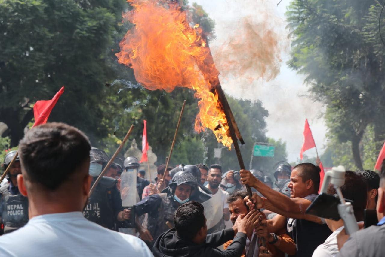 राष्ट्रपतिको पुत्ला दहन गर्न खोज्दा विद्यार्थी र प्रहरीबीच ढुंगा हानाहान (फोटो फिचर)