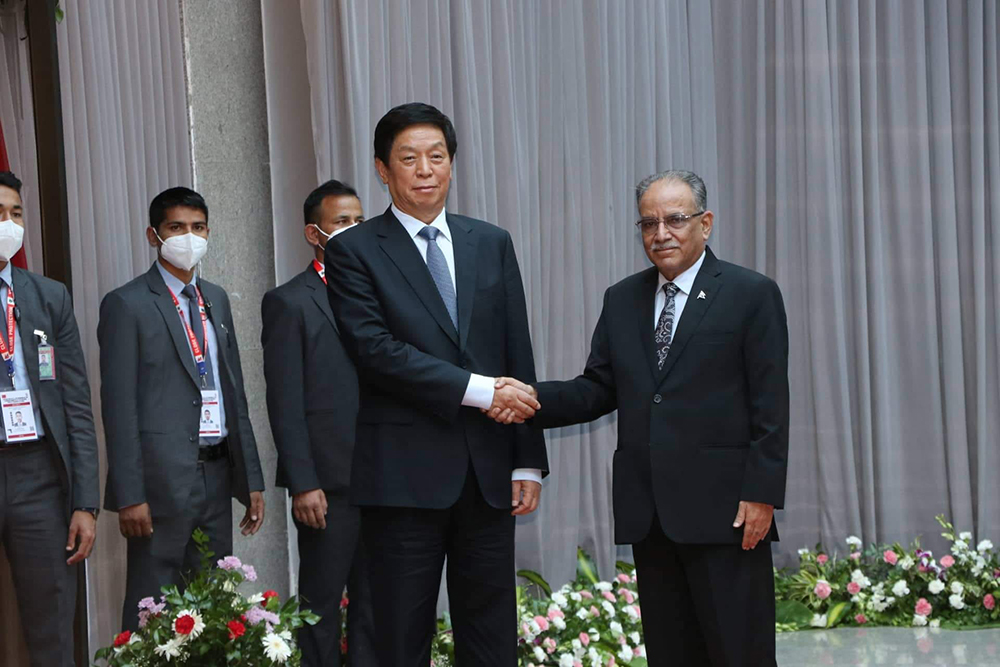 काठमाडौं । नेपाल भ्रमणमा रहेका चिनियाँ कम्युनिष्ट पार्टी सीपीसीका स्थायी समिति सदस्य एवं चिनियाँ जनकंग्रेसका अध्यक्ष ली चाङ्सुले माओवादी अध्यक्ष पुष्पकमल दाहाल प्रचण्डसँग भेटवार्ता गरेका छन् ।