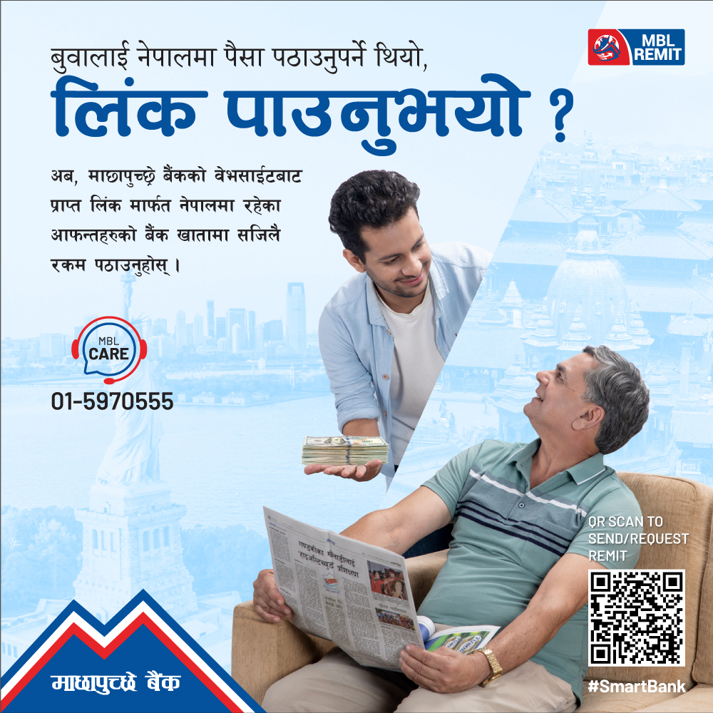 माछापुच्छ्रे बैंकको मोवाइल बैंकिङ्ग र वेभसाइट मार्फत रेमिट्यान्स प्राप्त गर्न सकिने