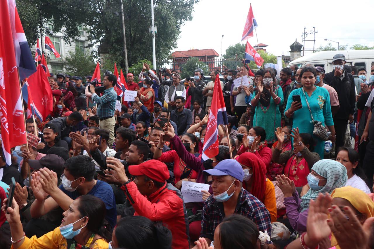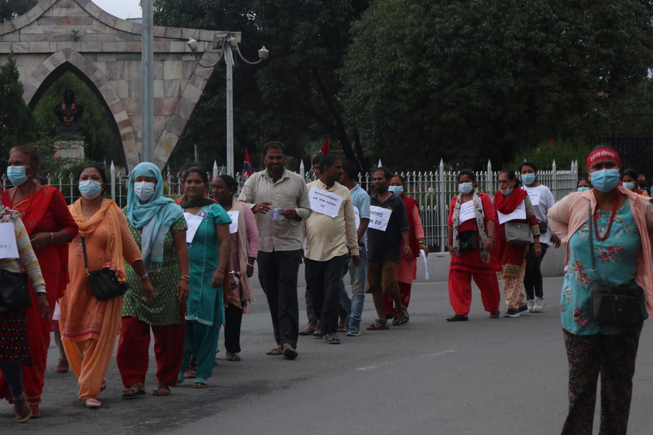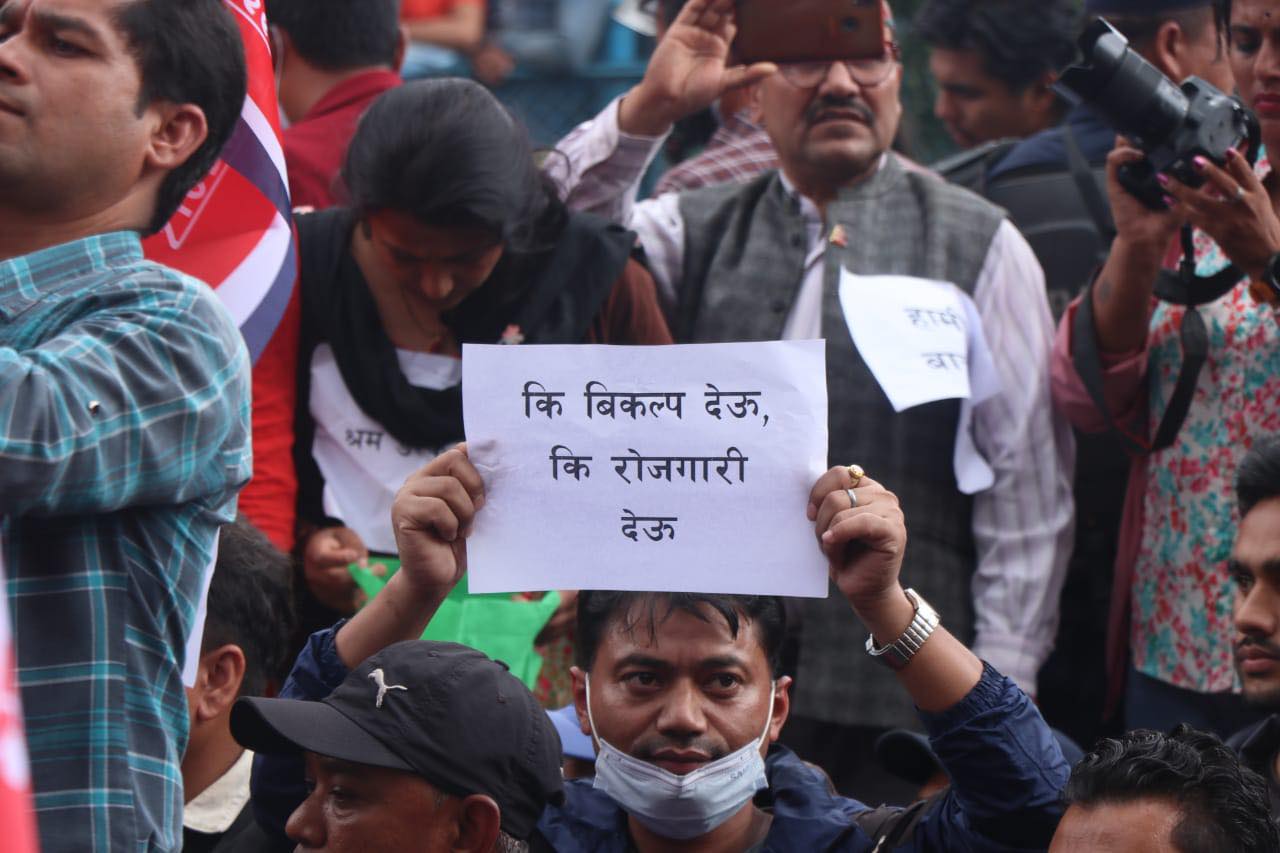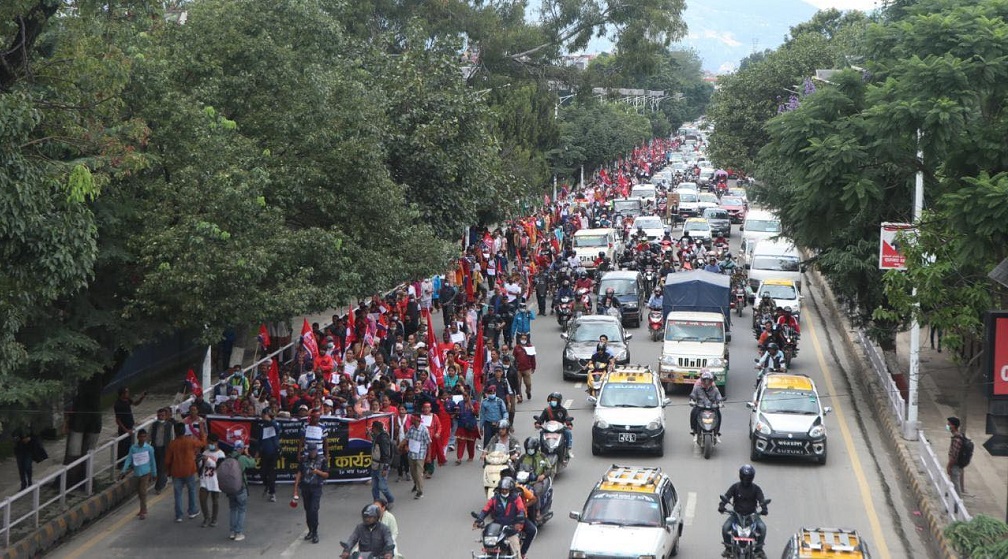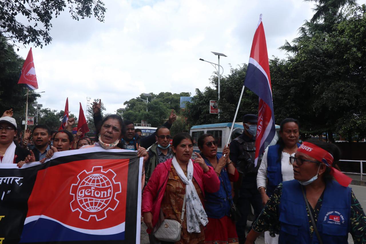 एमालेनिकट मजदुर संगठन जिफन्टआवद्ध नेपाल स्वरोजगार श्रमिक व्यापार संघको अगुवामा बिहीबार प्रदर्शन गरिएको छ ।