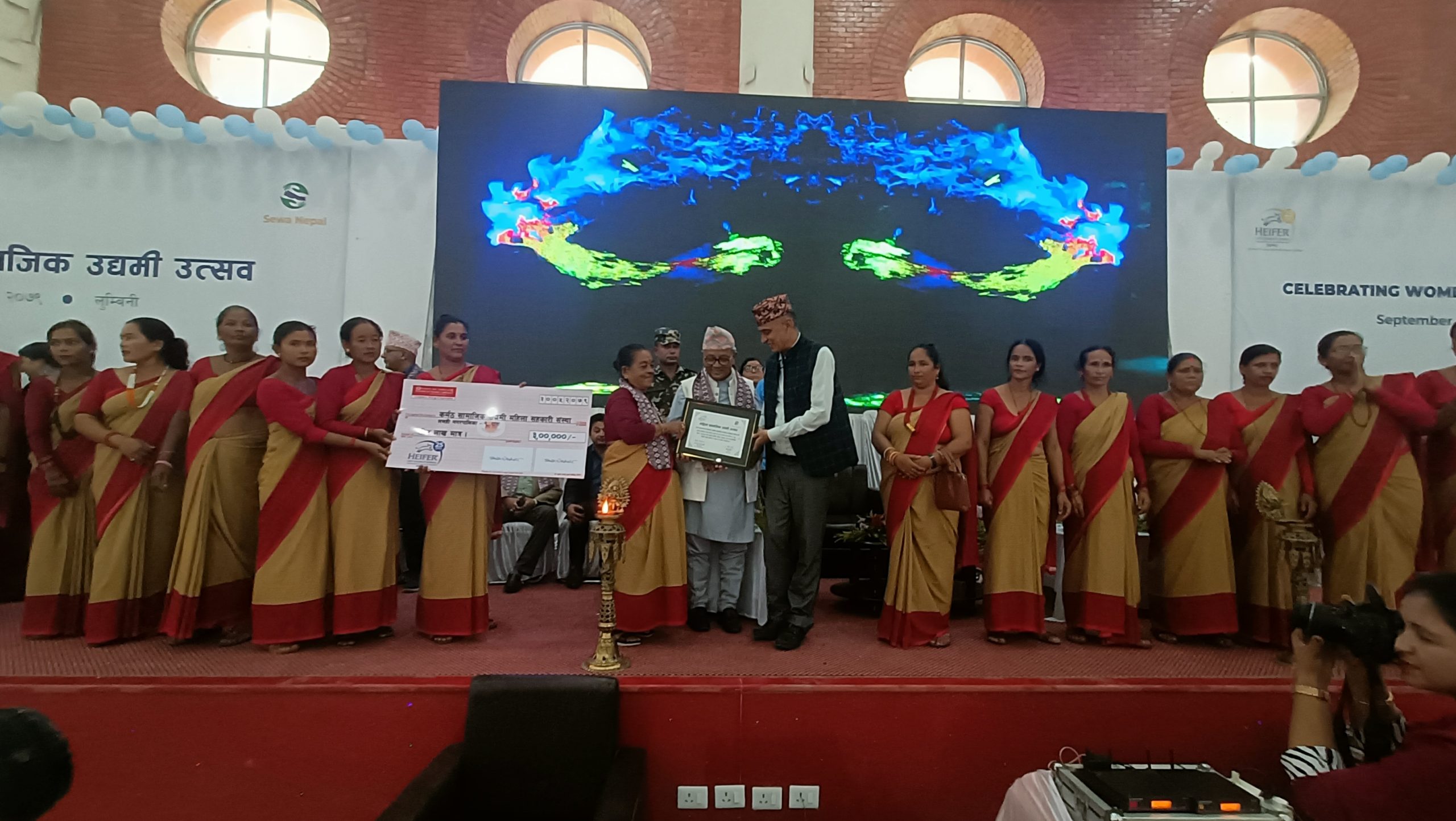 सामाजिक उद्यमकी महिला सञ्जाल सेवा नेपाल र हेफर इन्टरनेशनल नेपालले संयुक्त आयाेजना भएकाे महिला उद्यमी उत्सवमा पुरस्कृत सहकारीहरुलाई लुम्बिनी प्रदेश प्रमुख अमिक शेरचन, पूर्वमन्त्री गाेकर्ण विष्ट, चक्रपाणि खनाल, लुम्बिनी प्रदेश सासंद देवेन्द्रराज कंडेल, हेफर अन्तर्राष्ट्रियका प्र्मुख वितिय अधिकृत मार्सिया रस्मुसेन , बरिस्ठ उपाध्यक्ष महेन्द्रनाथ लाेहनी लगायतले पुरस्कार प्रदान गरेका थिए ।