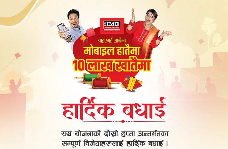 कूल ८२ जना सेवाग्राहीहरू प्रत्यक्ष लाभान्वित हुने यस अफर ‘आइएमई साथैमा, मोबाइल हातैमा र १० लाख खातैमा’ भन्ने मुख्य थीममा आधारित हुनेछ । उक्त अफर २०७८ साल भाद्र १६ गतेदेखि कार्तिक १६ (तदनुसार सेप्टेम्बर १–नेभेम्बर २, २०२२) सम्म कूल ९ हप्ता अर्थात ६३ दिन कायम हुनेछ ।