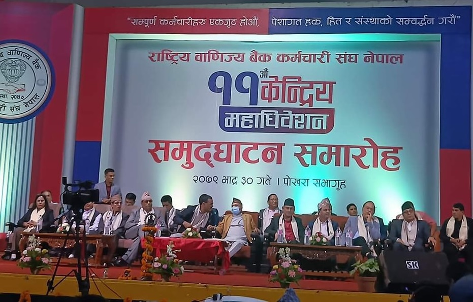 संघका का.वा.अध्यक्ष रामप्रसाद जोशीको अध्यक्षतामा सम्पन्न भएको महाधिवेशनकोे समुद्घाटन नेकपा एमालेका स्थायी समिति सदस्य एवं संगठन विभाग प्रमुख खगराज अधिकारीले गरेका थिए । उनले रा.वा. बैंक नेपालको आर्थिक क्षेत्रको महत्वपूर्ण वित्तिीय संस्था भएको बताउंदै, संंस्थालाई सबल बनाउन व्यवस्थापन र ट्रेड युनियनको भूमिका अहम हुने बताए ।