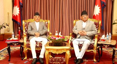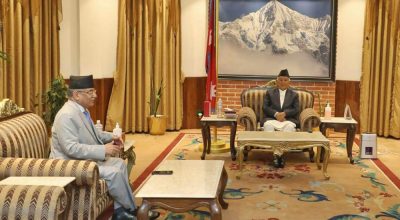 काठमाडौं । राष्ट्रपति विद्यादेवी भण्डारीलाई भेट्न प्रधानमन्त्री शेरबहादुर देउवाले शीतल निवास पुगेका छन् ।