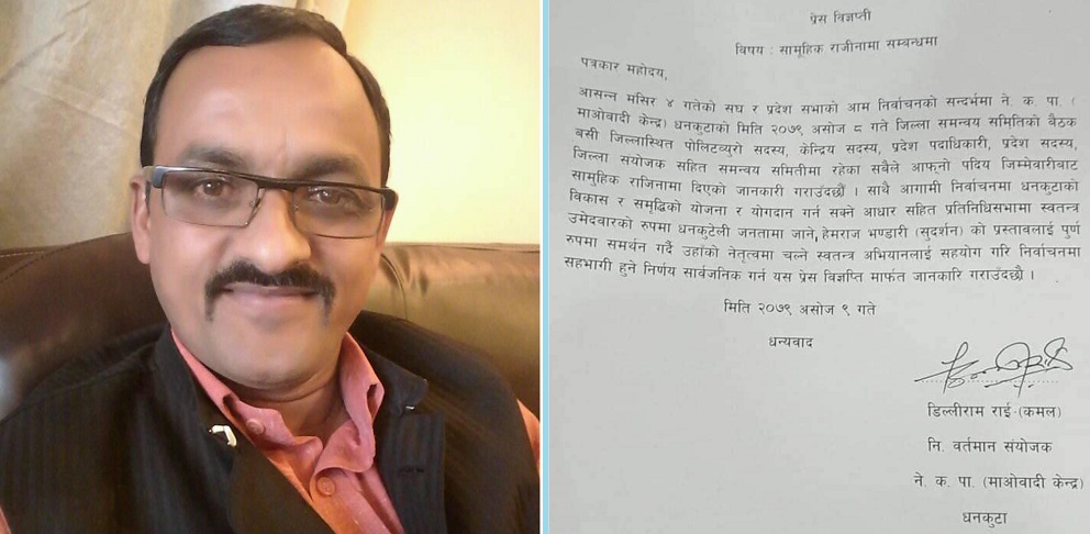 काठमाडौं । माओवादी केन्द्र धनकुटाको सिंगो जिल्ला समन्वय समितिले सामुहिक राजीनामा दिएको छ ।