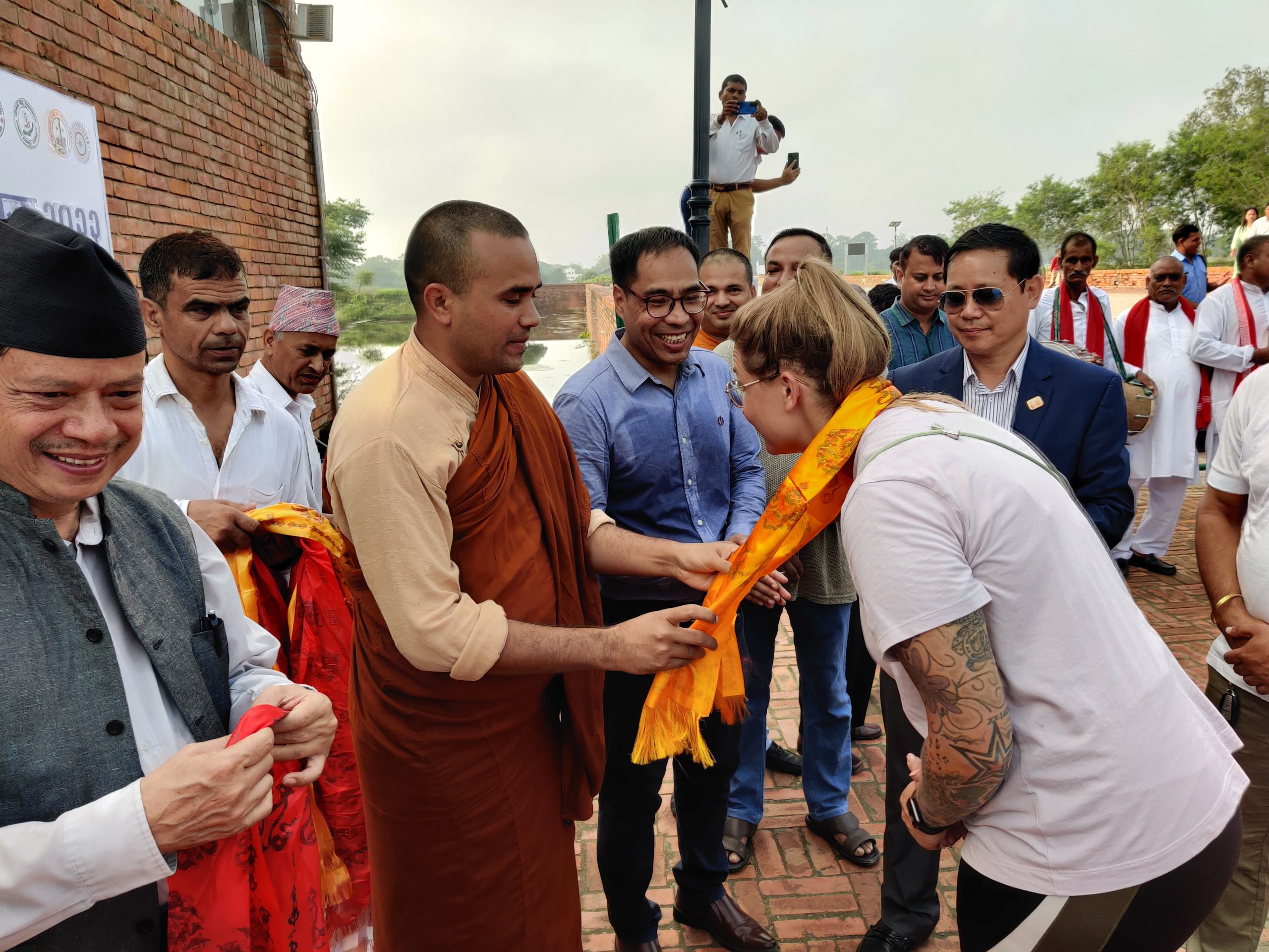 लुम्बिनी बौद्ध विश्वविद्यालयका उपकुुलपती ह«दयरत्न बज्राचार्य, लुम्बिनी विकास कोषका उपाध्यक्ष भिक्षु मैत्रयले स्पेन, भियतनाम, होल्याण्ड, भारतबाट आएका बाह्य पर्यटकहरुलाई खादा लगाएर लुम्बिनीमा स्वागत गरका हुन । शान्ति दीपमा स्वागत गर्दै पर्यटकहरुलाई मायादेवी मन्दिरसम्म स्थानीय साँस्कृतिक झाकी सहित भ्रमणका लागि लगिएको थियो ।