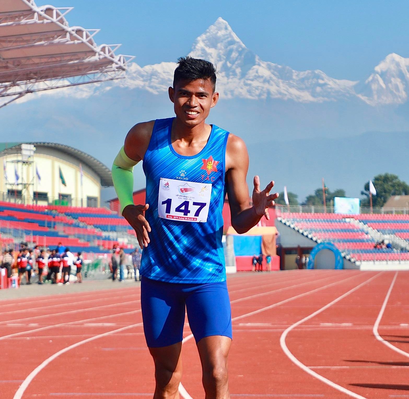 काठमाडौं । नवौँ राष्ट्रिय खेलकुदअन्तर्गत पुरुष चार सय मिटरमा त्रिभुवन आर्मी क्लबका सोम कुमालले मंगलबार नयाँ राष्ट्रिय कीर्तिमानसहित स्वर्ण पदक जितेका छन् ।