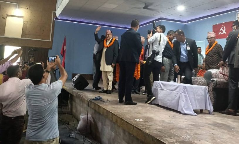काठमाडौं । एमाले र राप्रपाले झापा–१ को धुलाबारीमा आयोजना गरेको संयुक्त कार्यकर्ता भेलामा एमाले अध्यक्ष केपी शर्मा ओली उपस्थित भएका छन् । आगामी ४ मंसिरमा हुने प्रतिनिधिसभा र प्रदेशसभा निर्वाचनको प्रचारप्रसारका लागि बुधबार संयुक्त भेला आयोजना गरिएको हो ।