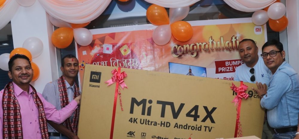 बुटवल । एमआई मोबाईलको बम्पर पुरस्कार बुटवल देबीनगरका प्रकाश खनालले प्राप्त गरेका छन । एक समारोहका बीच एमआई मोबाइलका आधिकारीक विक्रेता बिनायक मल्टी सप्लायर्सका संचालक आशिष कुमार श्रेष्ठ, श्री आर एस ईलेक्टोलिक्सका संचालक रिन्कु लिगल, एमआई मोबाइलका एरिया सेल्स म्यानेजर मोहित रत्न राजभण्डारीले खनाललाई १ लाख १० हजार रुपैया बजार मुल्यको एमआई फोर एस ६५ ईन्च टिभी हस्तान्तरण गरे ।