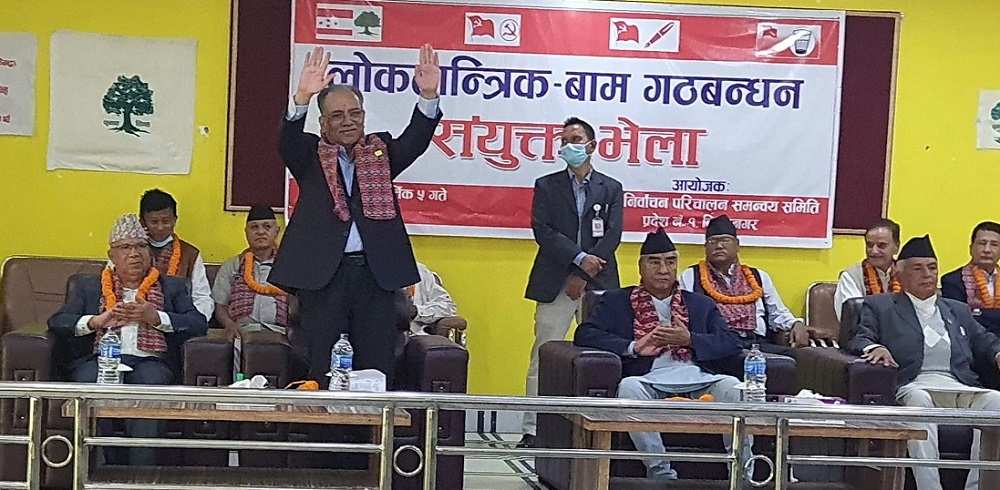 सत्ता गठबन्धनद्वारा विराटनगरमा शनिबार आयोथिजत संयुक्त कार्यकर्ता भेलालाई सम्बोधन गर्दै अध्यक्ष प्रचण्डले चुनावपछि गठबन्धनको सरकार बनेमा हाल टिकट नपाएर असन्तुष्ट रहेका नेता कार्यकर्ताको अनुहार नै उज्यालो हुने दाबी गरेका छन्।