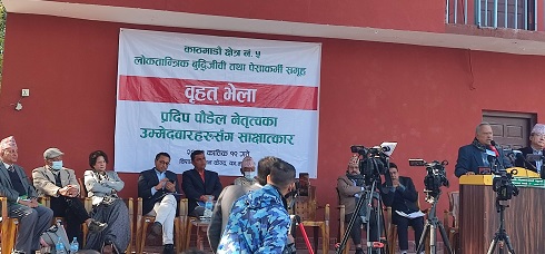 ‘मैले पाँच बर्षअघि पनि लोकतान्त्रिक शक्तिलाई मत दिँऔँ भनेर भनेको थिए । अब यसपटक भने भुल नगरौँ,’ उनले भने, ‘अहिले यस क्षेत्रले प्रदीप पौेडेललाई उम्मेद्वारको रुपमा पाएको छ । प्रदीप सुन्दर नेपालको परिकल्पनाकार हुन् । संकुचित सामन्ती सोचलाई पराजित गर्न लागि गठबन्धन गरेको हो । वैचारिक सम्मुन्नतिको पक्षमा मतदान गर्नुहोला ।’