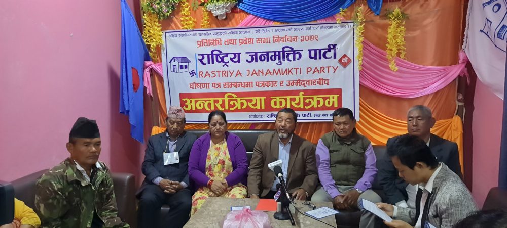बुटवल । राष्ट्रिय जनमुक्ति पार्टीले रुपन्देही-१ मा आफ्नो चुनावी घोषणापत्र सार्वजनिक गरेको छ । मगलबार पत्रकार सम्मेलनको आयोजना गरी पार्टीका मूल्यांकन तथा अनुगमन समिति संयोजक दलबहादुर थापा बिरकट्टाले घोषणापत्र सार्वजनिक गरेका हुन् ।