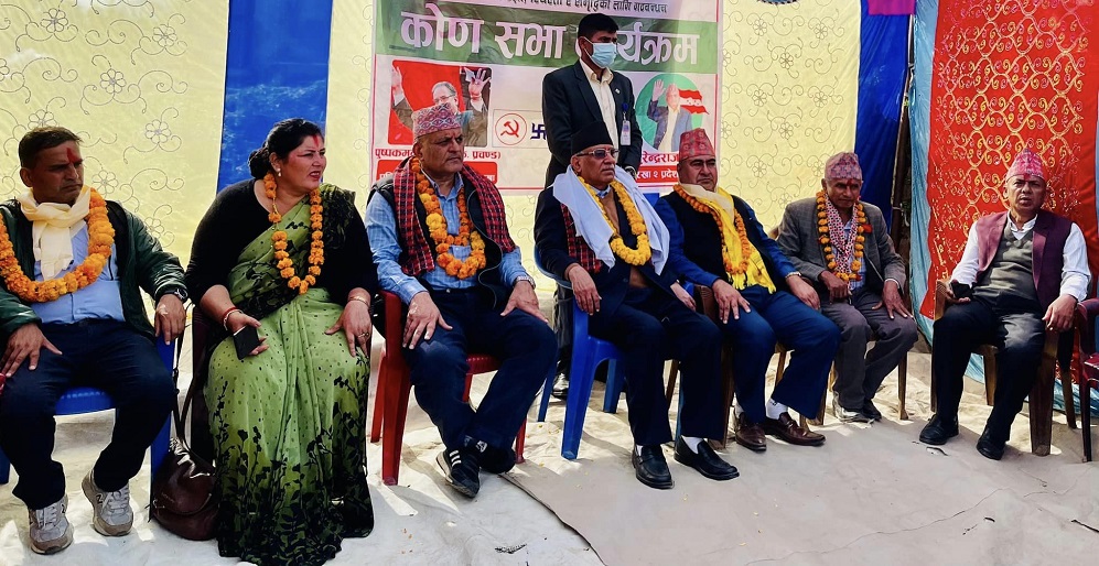 आफ्नो निर्वाचन क्षेत्रका मतदातासँग भोट माग्न दुई दिनदेखि गोरखामा रहेका प्रचण्ड आज सिरानचोक गाउँपालिकाको नयाँसाँघुमा आयोजित चुनावी कोणसभालाई सम्बोधन गर्दै संविधानको रक्षाका लागि वर्तमान वामलोकतान्त्रिक गठबन्धन बनाउनु परेको जिकिर गरे ।