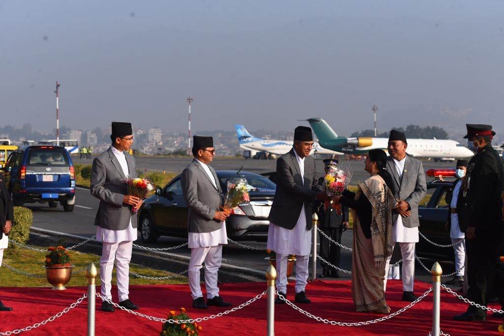 त्रिभुवन अन्तर्राष्ट्रिय विमानस्थलमा उपराष्ट्रपति नन्दबहादुर पुन, प्रधानमन्त्री शेरबहादुर देउवा राष्ट्रियसभाका अध्यक्ष गणेश तिमिल्सिनालगायतले भण्डारीलाई स्वागत गरेका छन्।