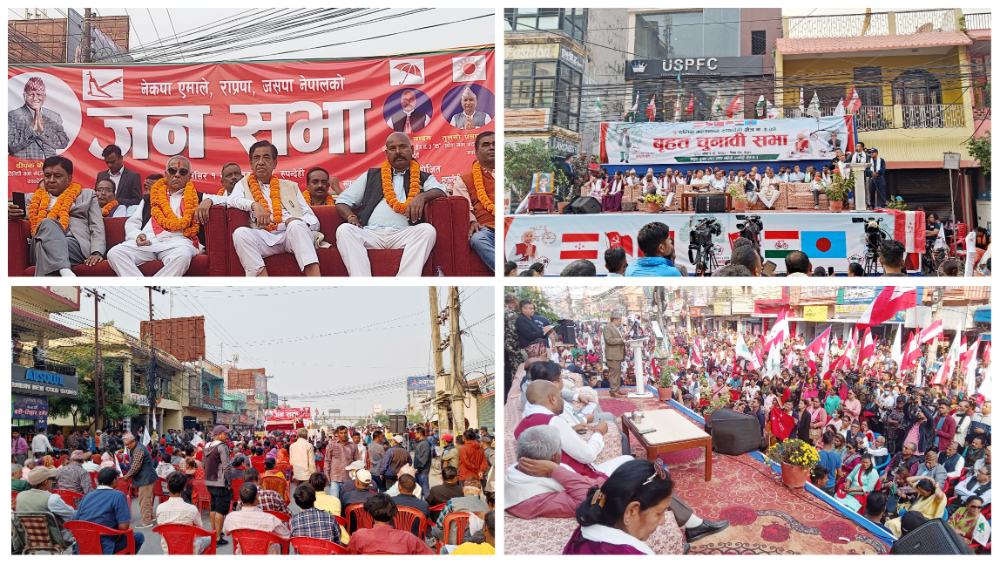 भैरहवा । भैरहवाको सडक नै कब्जा गरी मुख्य प्रतिस्पर्धीले बिहीबार आमसभा गरेका छन् । पाँचदलीय गठबन्धनबाट नेपाली कांग्रेस रुपन्देही क्षेत्र नम्बर ३ बाट प्रतिनिधिसभा सदस्यमा उम्मेदवारी दिएका बालकृष्ण खाण र तीनदलीय तालमेलबाट सोही पदका लागि राप्रपाबाट उम्मेदवार बनेका दीपक बोहराले भैरहवा बजारको सडक पूरा रूपमा अवरुद्ध गरी आमसभा गरेका हुन् ।