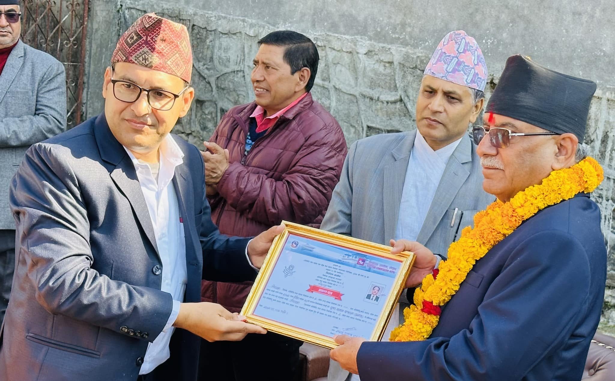 गोरखा । माओवादी केन्द्रका अध्यक्ष पुष्पकमल दाहाल प्रचण्डले निर्वाचित प्रमाणपत्र बुझेका छन् । शुक्रबार गोरखा पुगेर उनले निर्वाचित प्रमाणपत्र बुझेका हुन् । उनलाई जिल्ला निर्वाचन अधिकृतले प्रमाणपत्र हस्तान्तरण गरेका थिए ।
