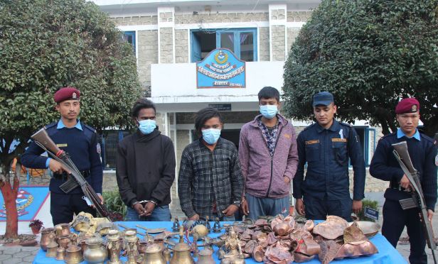 लमजुङ । मन्दिरबाट मूर्तिसहितका धातु चोरी र बिक्रीमा संलग्न तीन जनालाई लमजुङ प्रहरीले पक्राउ गरेको छ ।