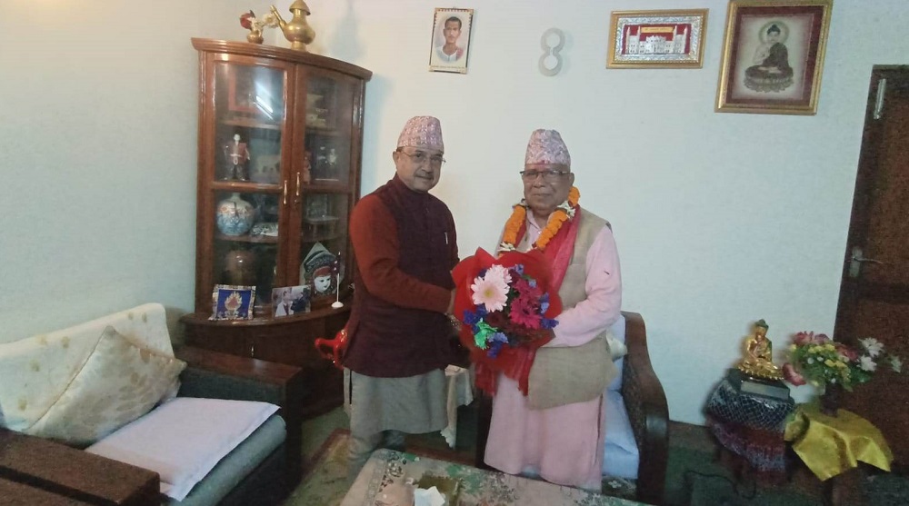 काठमाडौं । नेपाली कांग्रेसका उपसभापति पूर्णबहादुर खड्का र नेकपा एकीकृत समाजवादीका अध्यक्ष माधवकुमार नेपालबीच भेटवार्ता भएको छ ।