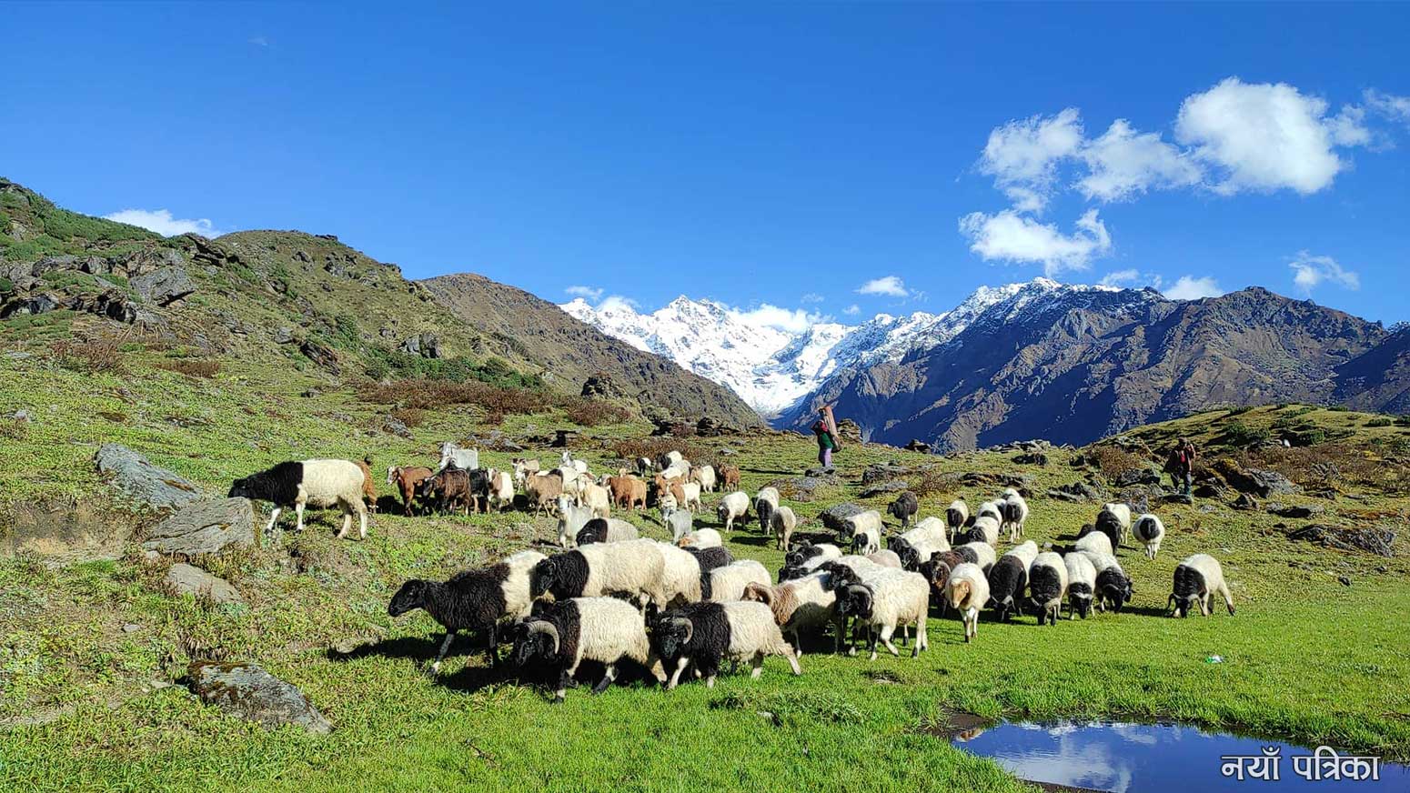 ढोरपाटन । “चिसो बढ्यो, अब माथि लेकमा बस्न सकिन्न गाह्रो हुन्छ, भेडापाठा पनि बिरामी पर्छन्, पानी जम्न थाल्यो, अहिले त घाँस पनि सकिन थाल्यो बेँसीमै बस्ने, धेरैजसो गोठाला झ¥यौँ, अरु पनि झर्छन् अब ।”