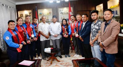 नवौ राष्ट्रिय खेलकुदमा पदक विजेता रुपन्देहीका खेलाडीलाई सम्मान