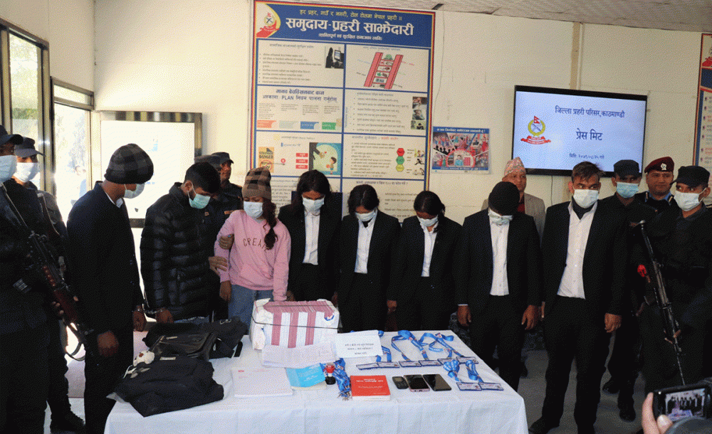 प्रहरी परिसर काठमाडौंले उनीहरूलाई नयाँ बसपार्क क्षेत्रबाट पक्राउ गरेको जनाएको हो । प्रहरीले उनीहरूलाई आइतबार सार्वजनिक गरेको छ । राजस्व कार्यालय लाजिम्पाटका कर्मचारी भएको झूठा विवरण दिएर रकम असुली गर्दै आएको खुलेको छ ।