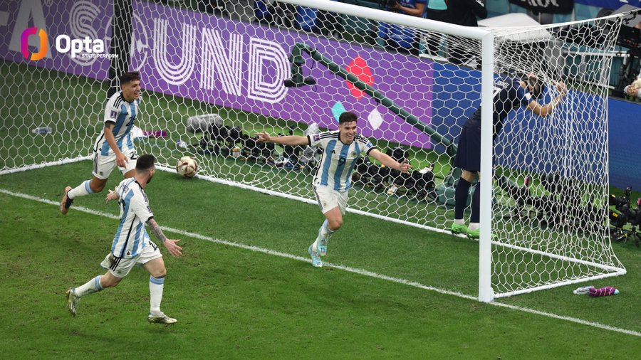 पहिलो गोलको पाँच मिनेट नवित्दै खेलको ३९ औं मिनेटमा ९ नम्वर जर्सीका जुलियान अल्भारेजले सुन्दर गोल गर्दै आफ्नो टिमको अग्रतालाई दोब्बर पार्न सफल भए ।