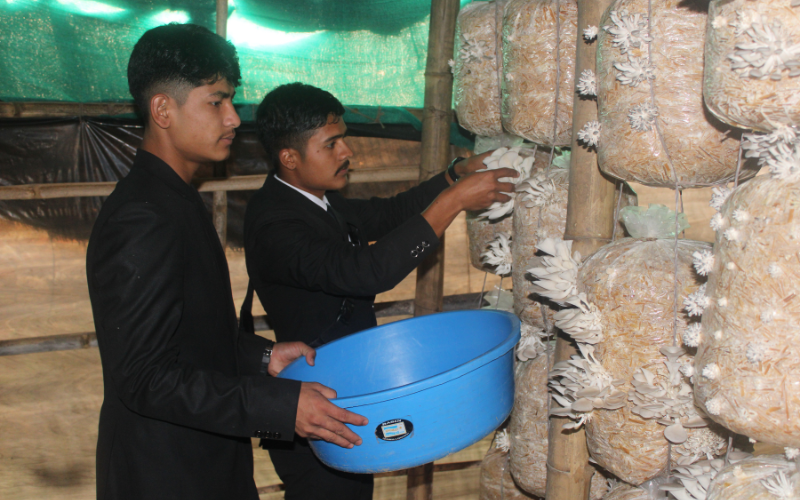 कक्षा ११ को सैद्धान्तिक अध्ययनसँगै विद्यार्थीले अभ्यासमार्पmत च्याउखेती गरेका हुन् । ‘किताब पढ्नेमात्रै होइन यसलाई व्यवहारमा उतार्नका लागि खेती गरेका हौं,’ छात्र विवश लामिछाने भन्छन्, ‘भविष्यमा यही खेतीबाट आम्दानी गरेर जीविकोपार्जन पनि गर्न सकिन्छ नि ।’ २२ विद्यार्थीले ८० हजारको लागतमा सुरु गरेको च्याउखेतीबाट पहिलोपटकमै ४० हजार आम्दानी लिइसकेका छन् ।