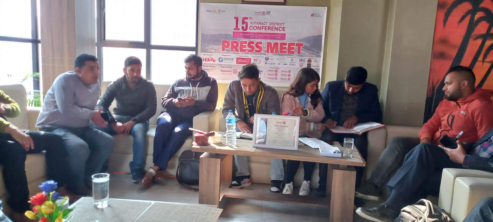 मनाेरथ अर्यालको अध्यक्षतामा सम्पन्न पत्रकार सम्मेलनमा क्लबका संस्थापक अध्यक्ष ज्ञानेन्द्र गिरी,क्लबका पुर्व अध्यक्ष तथा कार्यक्रम संयाेजक अनुप पाण्डे, राेट्रयाक्ट क्लब अफ बुटवल रामापिथेकसका अध्यक्ष बिष्णु घिमिरे, लक्ष्मण खरेल, सुभेक्षा पाण्डे लगायतले कार्यक्रम बारे जानकारी गराएका थिए ।