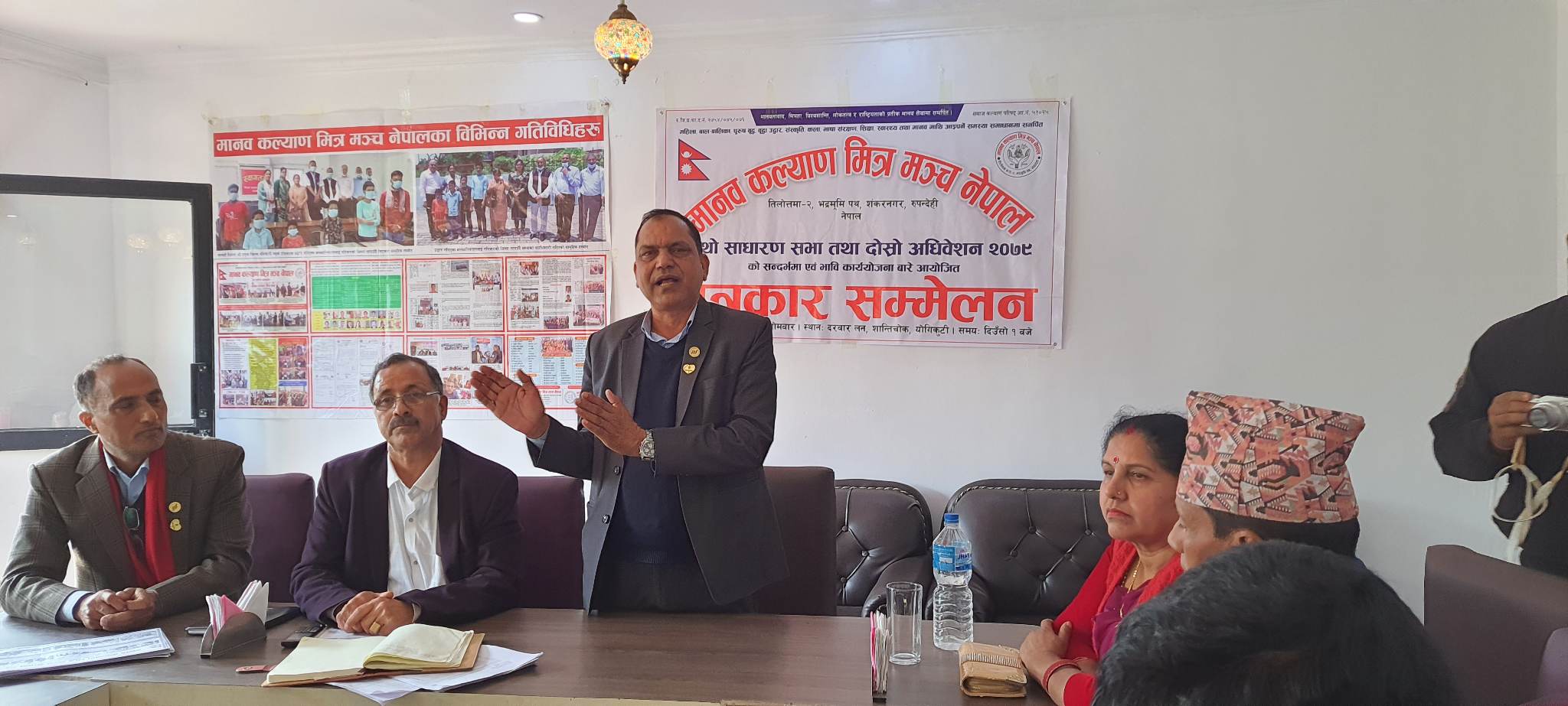 मानवीय सेवामा सर्मपित मानव कल्याण मित्र मञ्चको चौथौ साधारण सभा तथा दोस्रो अधिवेशन सम्पन्न भएको छ । साधारण सभा तथा अधिवेशनबाट अध्यक्षमा पुनःदुर्गाप्रसाद अर्याल अध्यक्षमा निर्वाचत भएका छन् ।