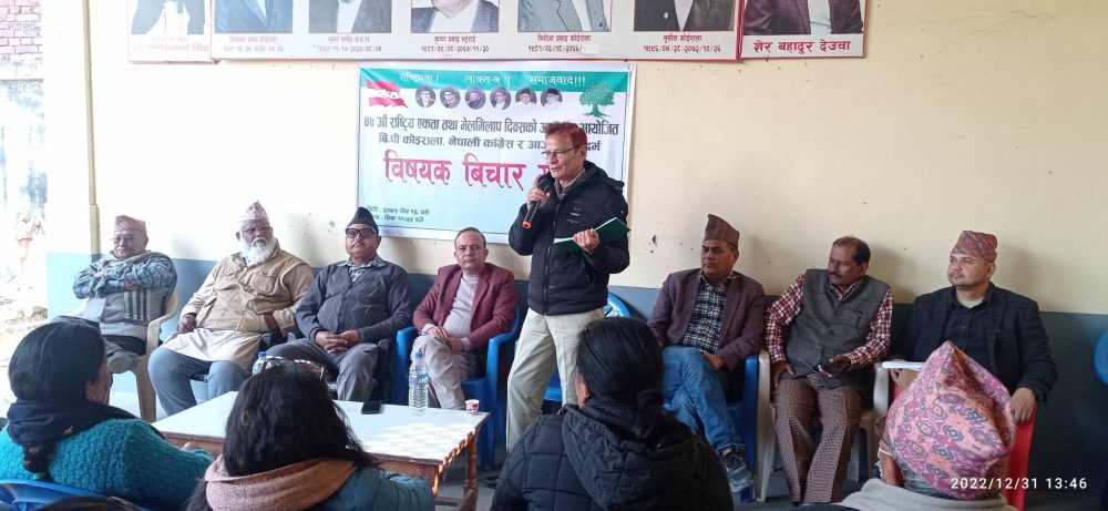कार्यक्रममा बोल्दै कांग्रेसका केन्द्रीय सदस्य मैकुलाल बाल्मिकीले अहिलेको परिस्थितिमा पार्टीभित्र आन्तरिक मेलमिलाप जरुरी रहेको बताए ।