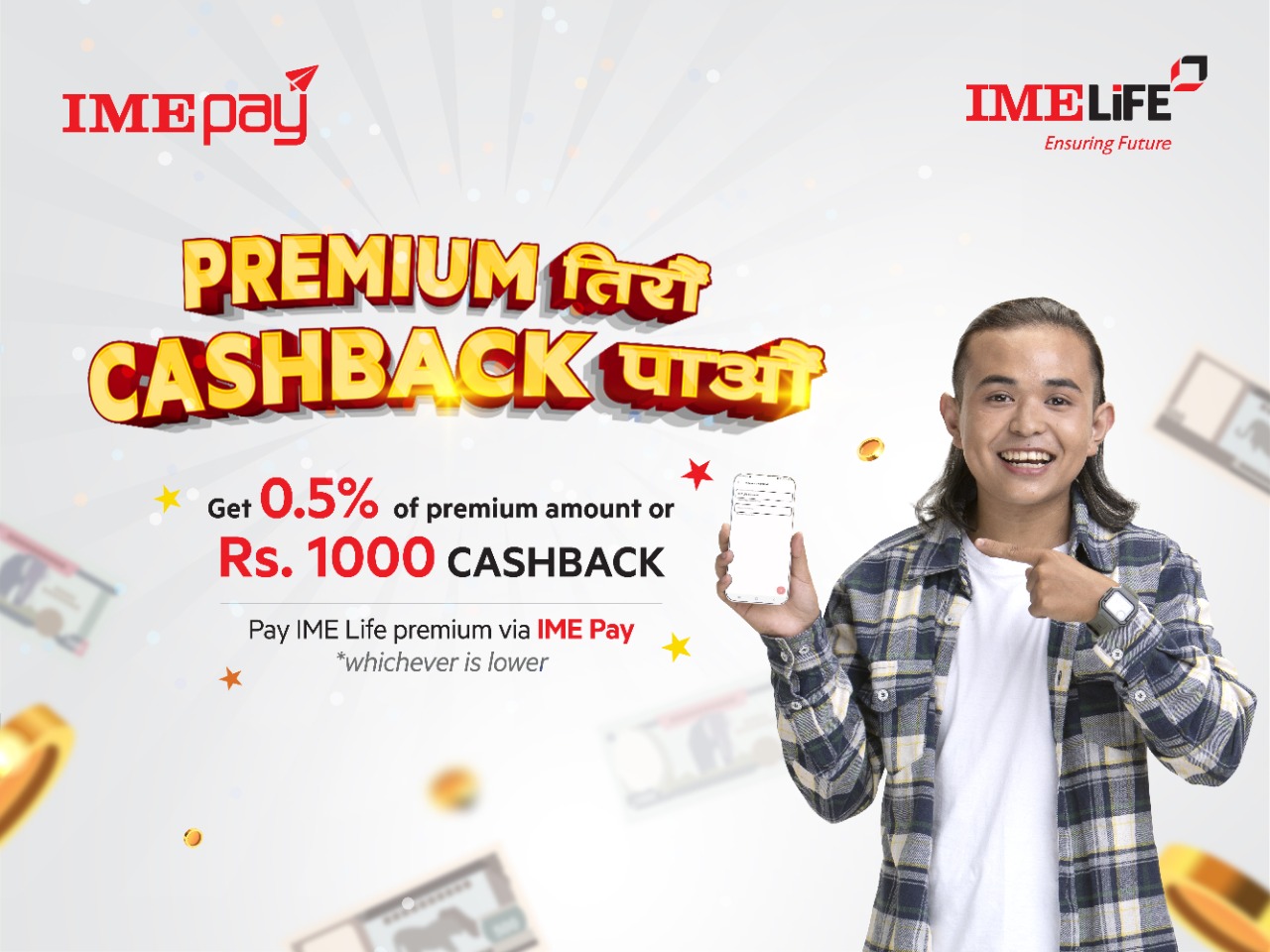 यसै विषयमाआइएमई पे र आई. एम. ई लाइफ इन्सोरेन्स कम्पनी लिमिटेडवीच सम्झौता सम्पन्न भएको छ । सम्झौता अनुसार आई. एम. ई लाइफ इन्सोरेन्स कम्पनीका सेवाग्राहीहरूले आइएमई पे वालेटबाट बीमा प्रिमियम भुक्तानी गर्दा रू. १ हजारसम्म क्यासब्याक प्राप्त गर्न सकिने गरी व्यवस्था मिलाइएको छ ।