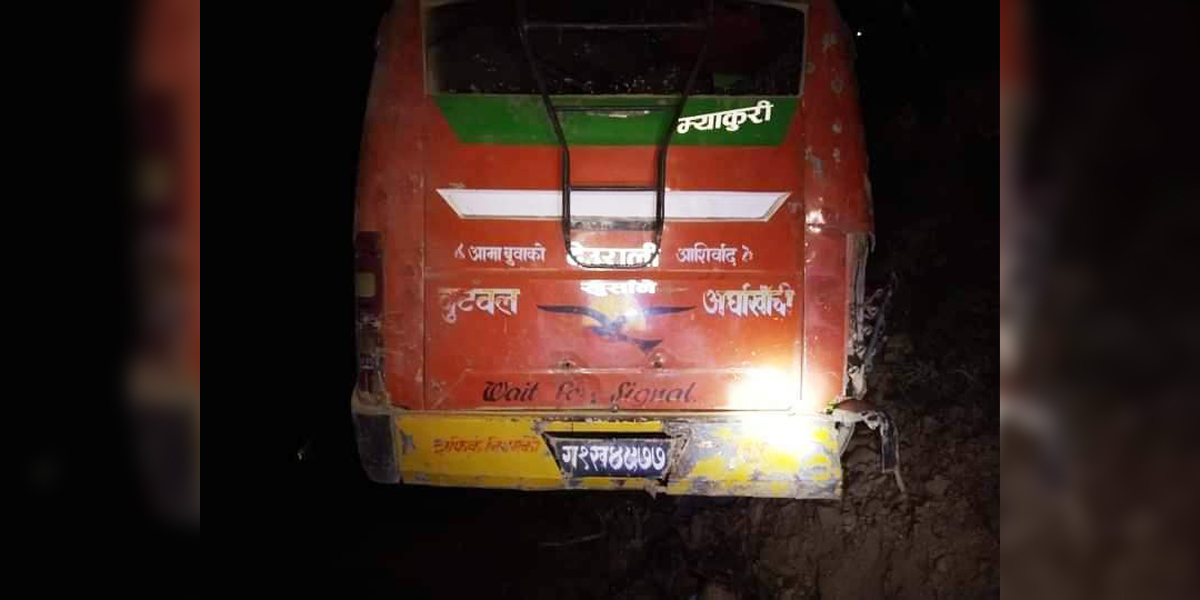 बुटवल । पाल्पाको रैनादेवी छहरा गाउँपालिका-८, खुर्सानेमा बुधबार राति यात्रुवाहक बस दुर्घटना हुँदा ६ जनाको ज्यान गएको छ।