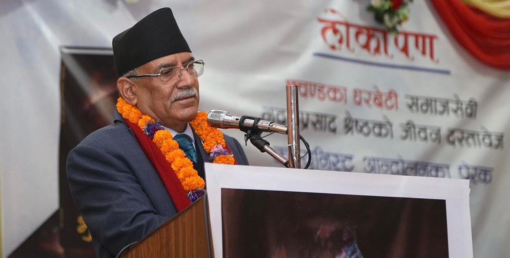 “My attention is drawn towards mega development projects in Gorkha,” PM Prachanda said, while releasing a book penned by Bhuwan Prasad Shrestha. Shrestha is an old leader of communist movement.