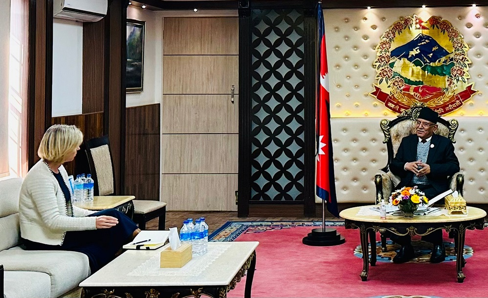 काठमाडौं । प्रधानमन्त्री पुष्पकमल दाहाल प्रचण्डसँग नेपालका लागि बेलायती राजदूत निकोला पोलिटले आज शिष्टाचार भेटवार्ता गरेकी छिन् ।