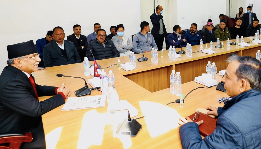 प्रधानमन्त्री तथा मन्त्रिपरिषद्को कार्यालय सिंहदरबारमा आज नेकपा (बहुमत) का नेता धमेन्द्र बास्तोलाको नेतृत्वमा आएको टोलीसँगको छलफलमा प्रधानमन्त्रीले उक्त कुरा बताएका हुन् । नेकपा माओवादी केन्द्रका अध्यक्ष समेत रहेका प्रधानमन्त्रीले भने “संविधानमा समाजवाद उन्मुख नेपालको व्यवस्था सामान्य अर्थमा लेखिएको होइन । नेपाली विशेषताको समाजवादी बाटोका बारेमा अहिले पनि बहस चलिरहेको छ । नेपालका सबै कम्युनिष्ट पार्टीबीच यस विषयमा छलफल सुरू भएको छ । तपाईंहरूको रचनात्मक भूमिका रहने अपेक्षा छ ।”