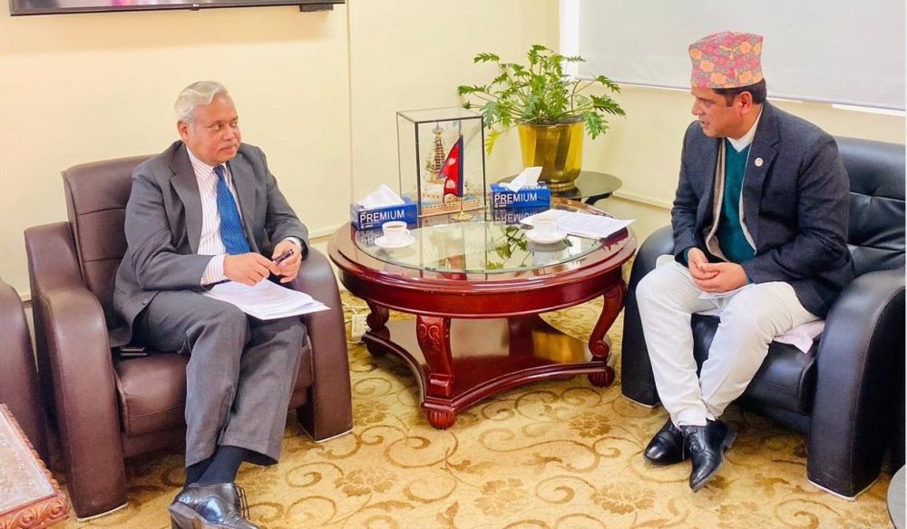 काठमाडौं । उद्योग, वाणिज्य तथा आपूर्तिमन्त्री दामोदर भण्डारी र नेपालस्थित भारतीय राजदूत नवीन श्रीवास्तवबीच आज शिष्टाचार भेटवार्ता भएको छ ।