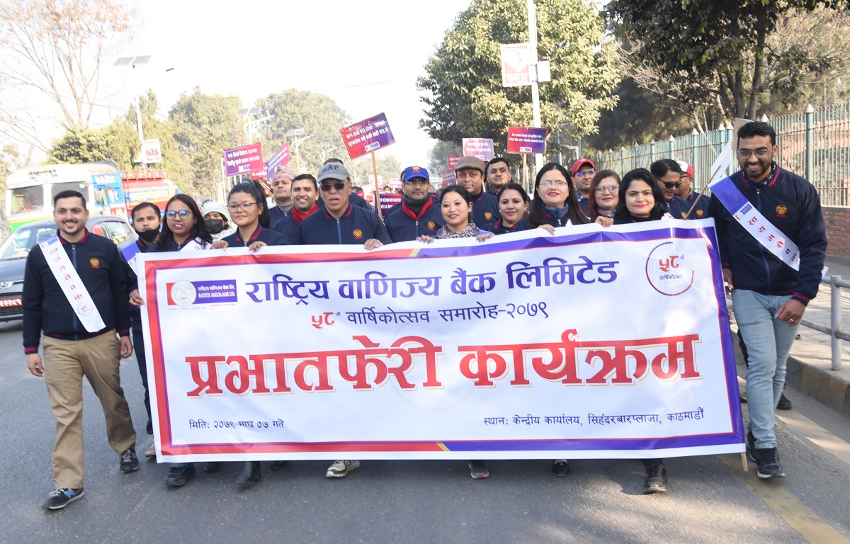 राष्ट्रिय वाणिज्य बैंकको ५८औं वार्षिकोत्सवको अवसरमा प्रभातफेरी कार्यक्रम सम्पन्न