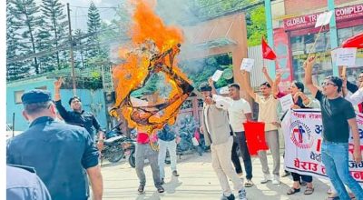 एकीकृत समाजवादी निकट अनेरास्ववियुद्वारा शिक्षामन्त्री खनालको पुत्ला दहन