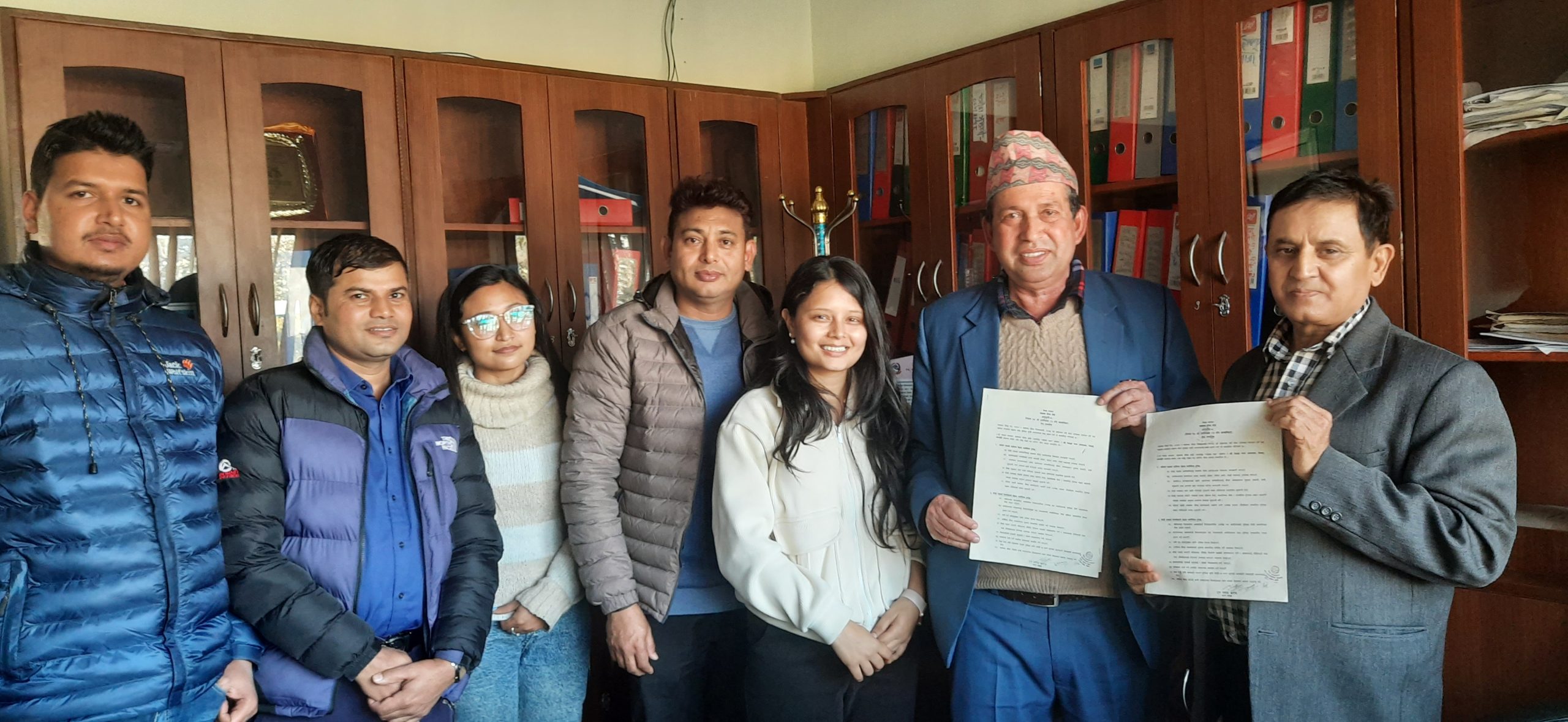 नगर प्रमुख ध्रुव खरेल, नगर अस्पतालकी मेडिकल सुपरिटेण्डेन्ट डा. संज्ञा सेन सहितको टोली तथा वीमा बोर्डका वरिष्ठ जनस्वास्थ्य प्रमुख शम्भुप्रसाद ज्ञवाली र उपसचिव बाबुराम खनालबीच शुक्रबार बीमा बोर्डको कार्यालयमा सम्झौता पत्र आदानपत्र भएको छ । स्वास्थ्य वीमा ऐन २०७४,स्वास्थ्य वीमा नियमावली २०७५ अनुसार सेवा प्रदान सम्बन्धी सम्झौता भएको हो ।