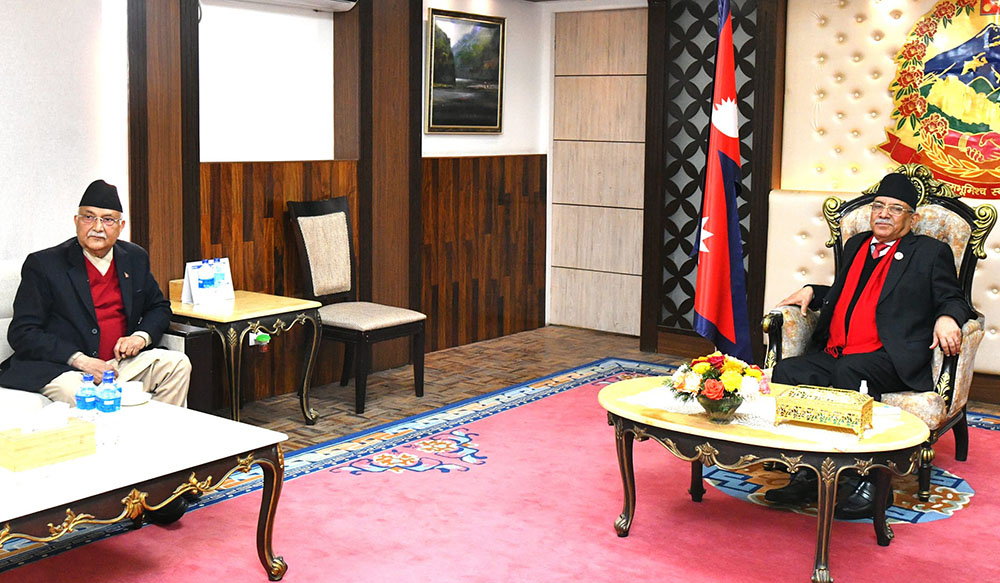 प्रधानमन्त्री प्रचण्ड भेट्न एमाले अध्यक्ष ओली आज फेरि बालुवाटारमा