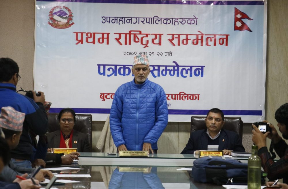 बुटवल । बुटवलमा उपमहानगरपालिकाहरुको राष्ट्रिय सम्मेलन आयोजना हुने भएको छ । बुटवलमा बुधबार पत्रकार सम्मेलन गरी आयोजक बुटवल उपमहानगरपालिकाले देशभरका उपमहानगरपालिकाहरुका प्रमुख, उपप्रमुख र प्रमुख प्रशासकीय अधिकृतहरुको राष्ट्रिय सम्मेलन आयोजना हुने जानकारी गराएको हो ।