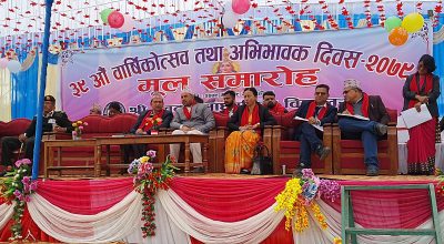 वार्षिकोत्सवको उद्घाटन गर्दै देवदह नगरपालिकाका प्रमुख ध्रुवप्रसाद खरेलले शिक्षा नै समाज विकासको पहिलो आधार भएकाले नगरपालिकाले शिक्षा क्षेत्रको समग्र विकासलाई उच्च प्राथमिकतामा राखेको बताए । उनले विद्यालय व्यवस्थापन समितिले अघि सारेका योजना र कार्यक्रम कार्यान्वयनमा नगरपालिकाले यथासम्भव सहयोग गर्ने प्रतिवद्धता जनाए ।