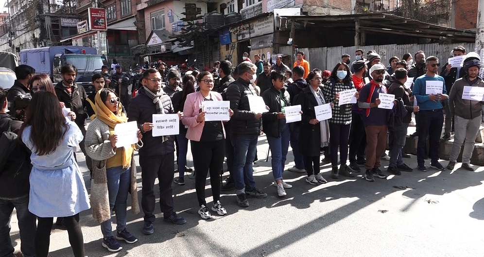 काठमाडौं । नाबालिग बलात्कारको अभियोग लागेका क्रिकेटर सन्दीप लामिछानेलाई क्यानले राष्ट्रिय टोलीमा फर्काइएको भन्दै काठमाडौंको माइतीघर मण्डलामा क्यान र सन्दीप विरुद्ध प्रदर्शन भएको छ ।